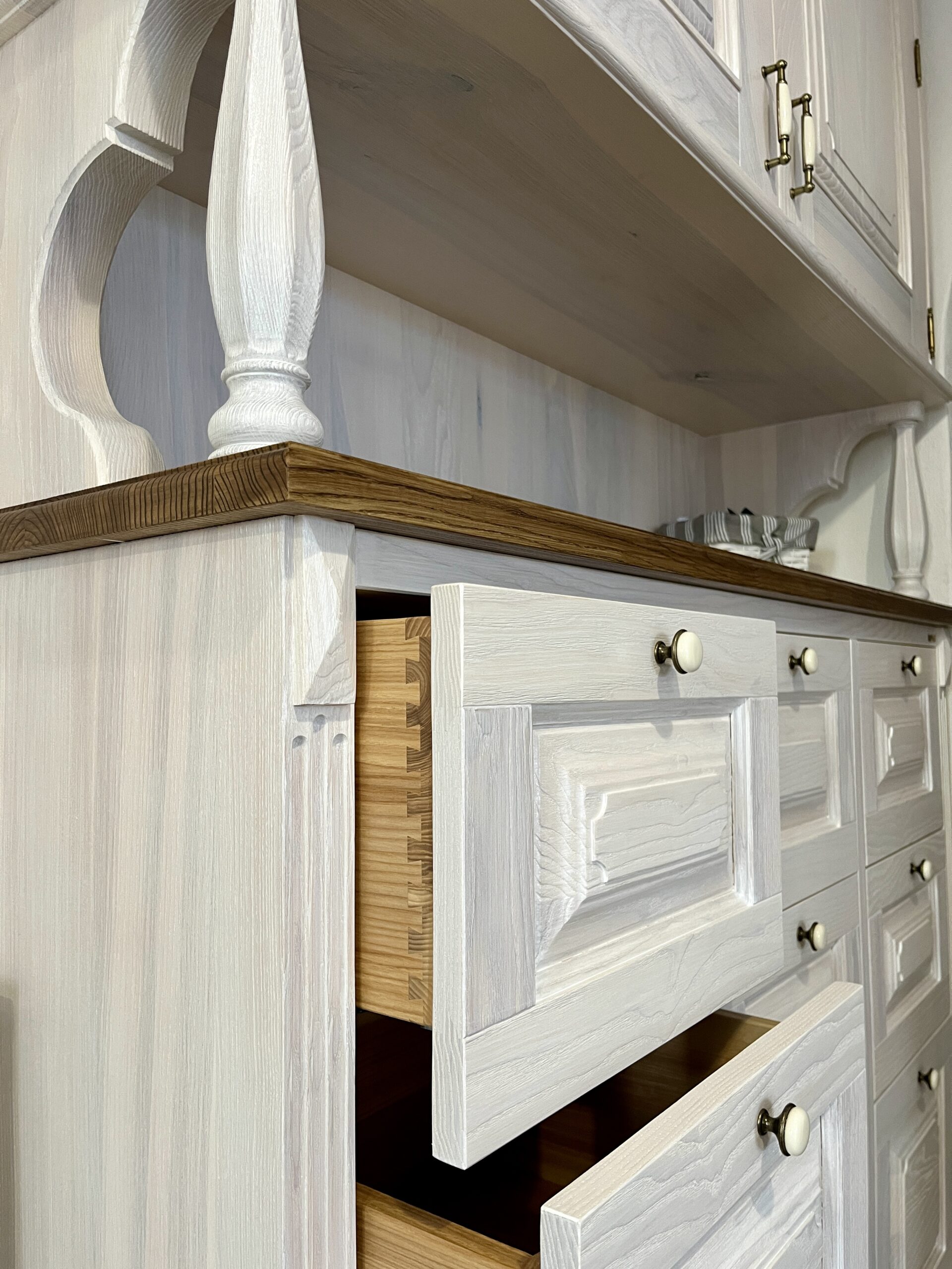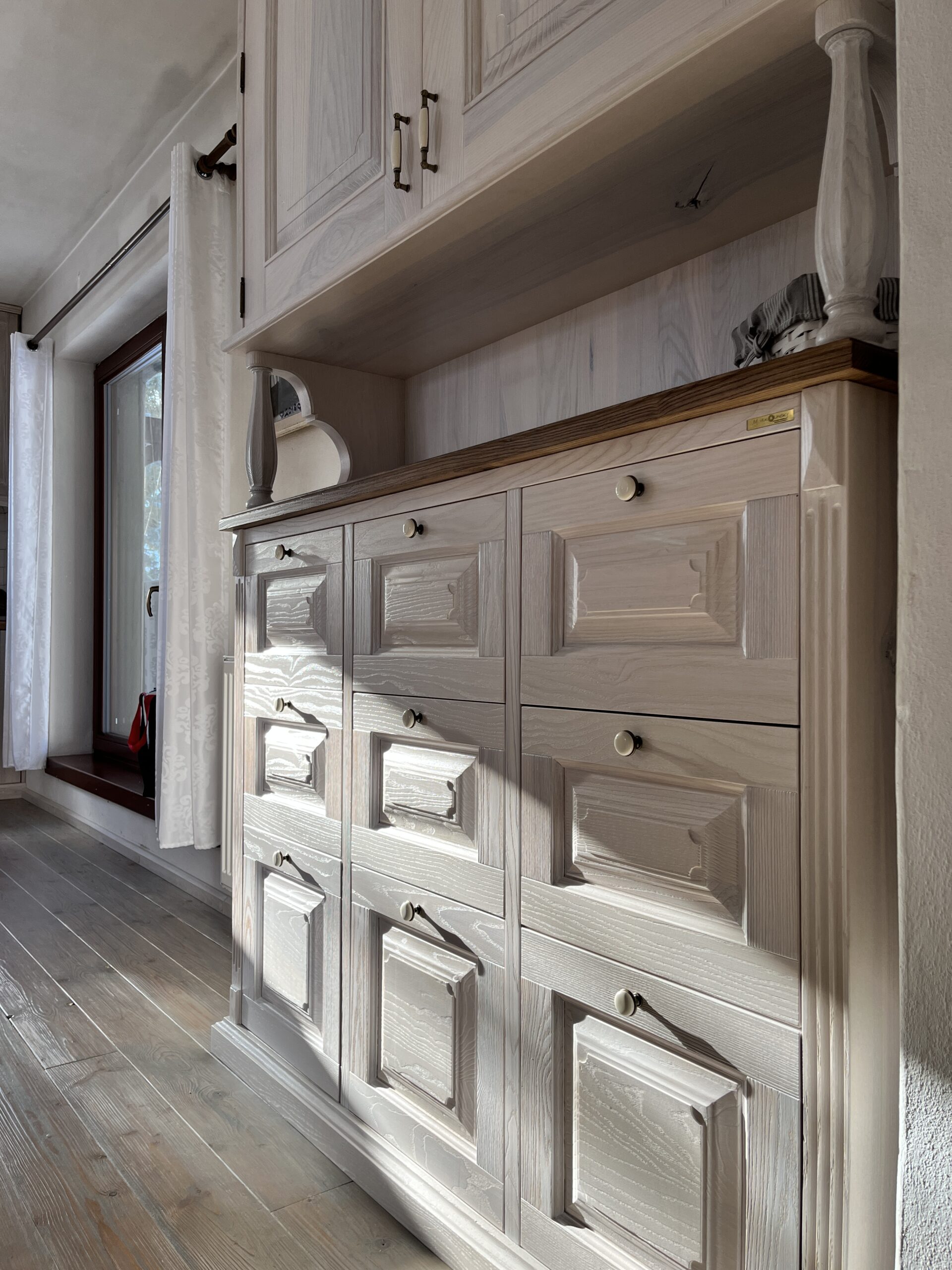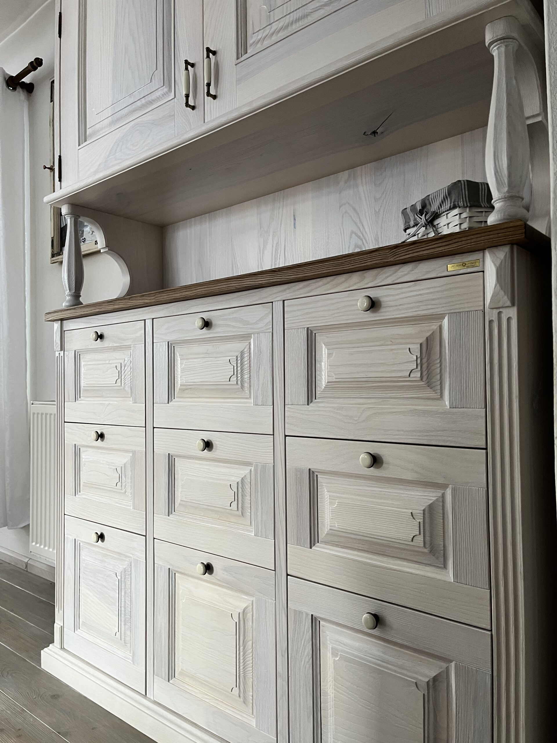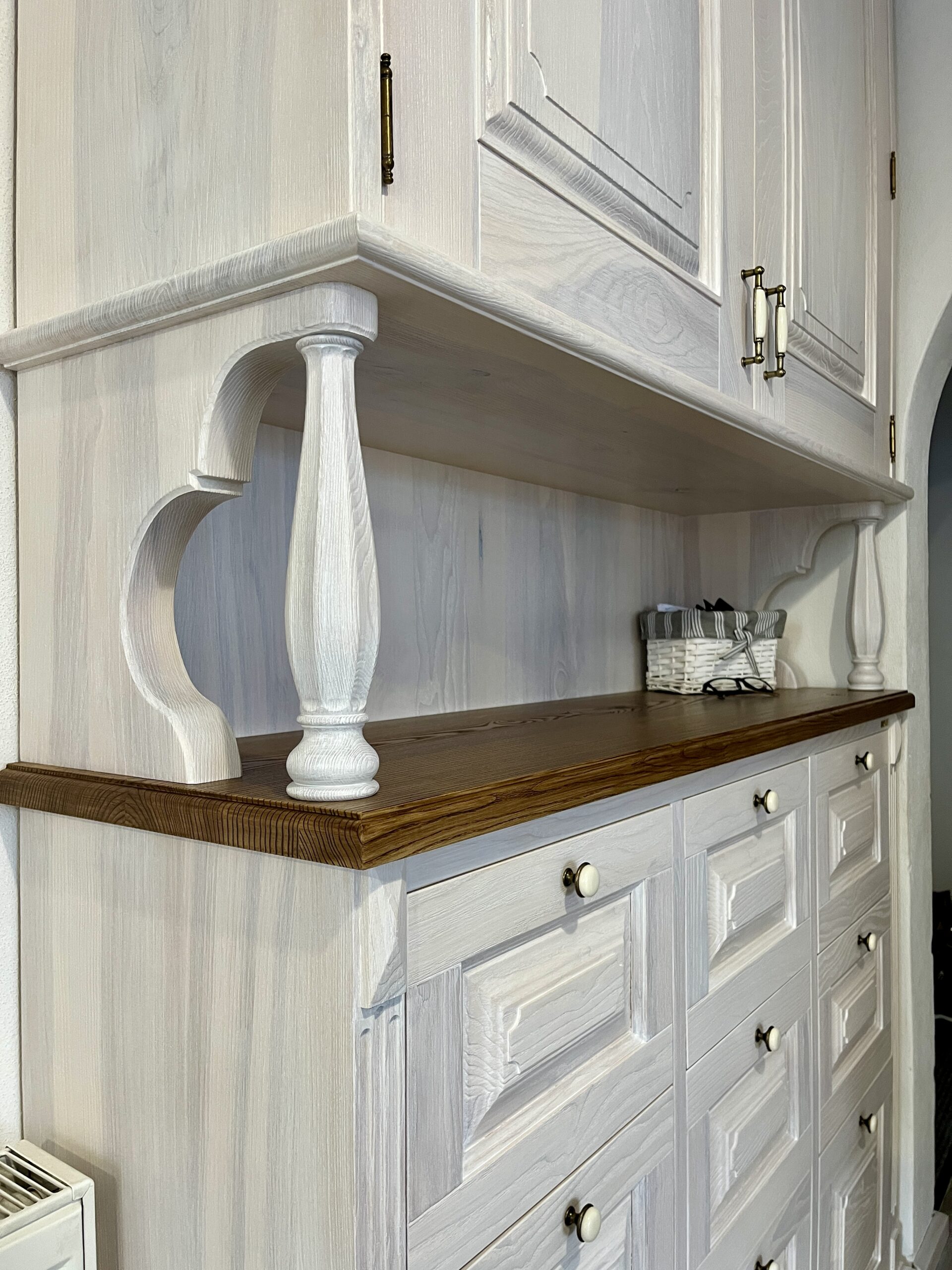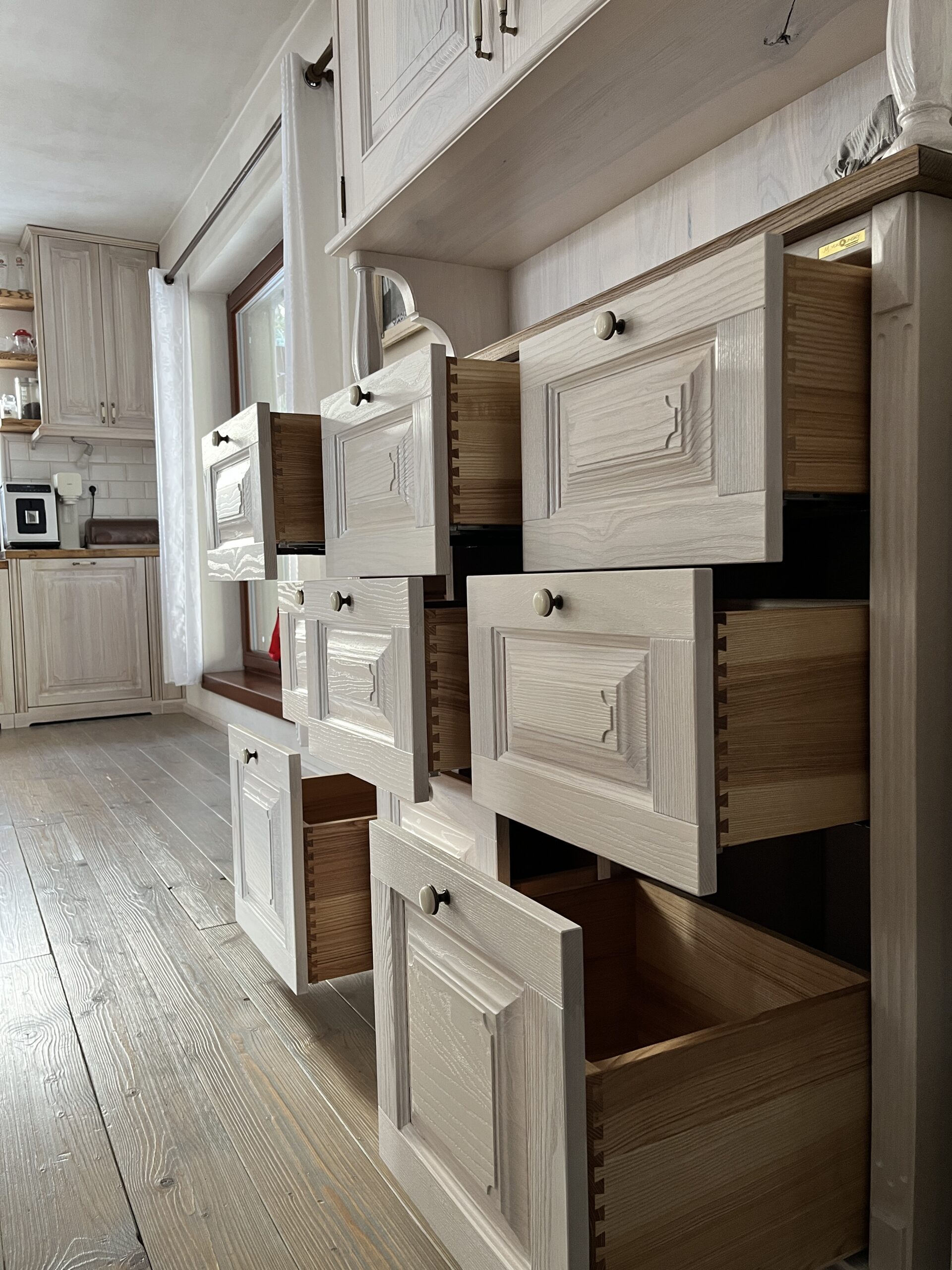 Provensálska kuchynská linka z masívneho jaseňového dreva je spojením tradičného remesla, poctivých materiálov a nadčasovej elegancie. Každý detail vznikal s dôrazom na autentický vzhľad a dlhú životnosť, bez použitia drevotriesky či MDF – výhradne z masívneho dreva.