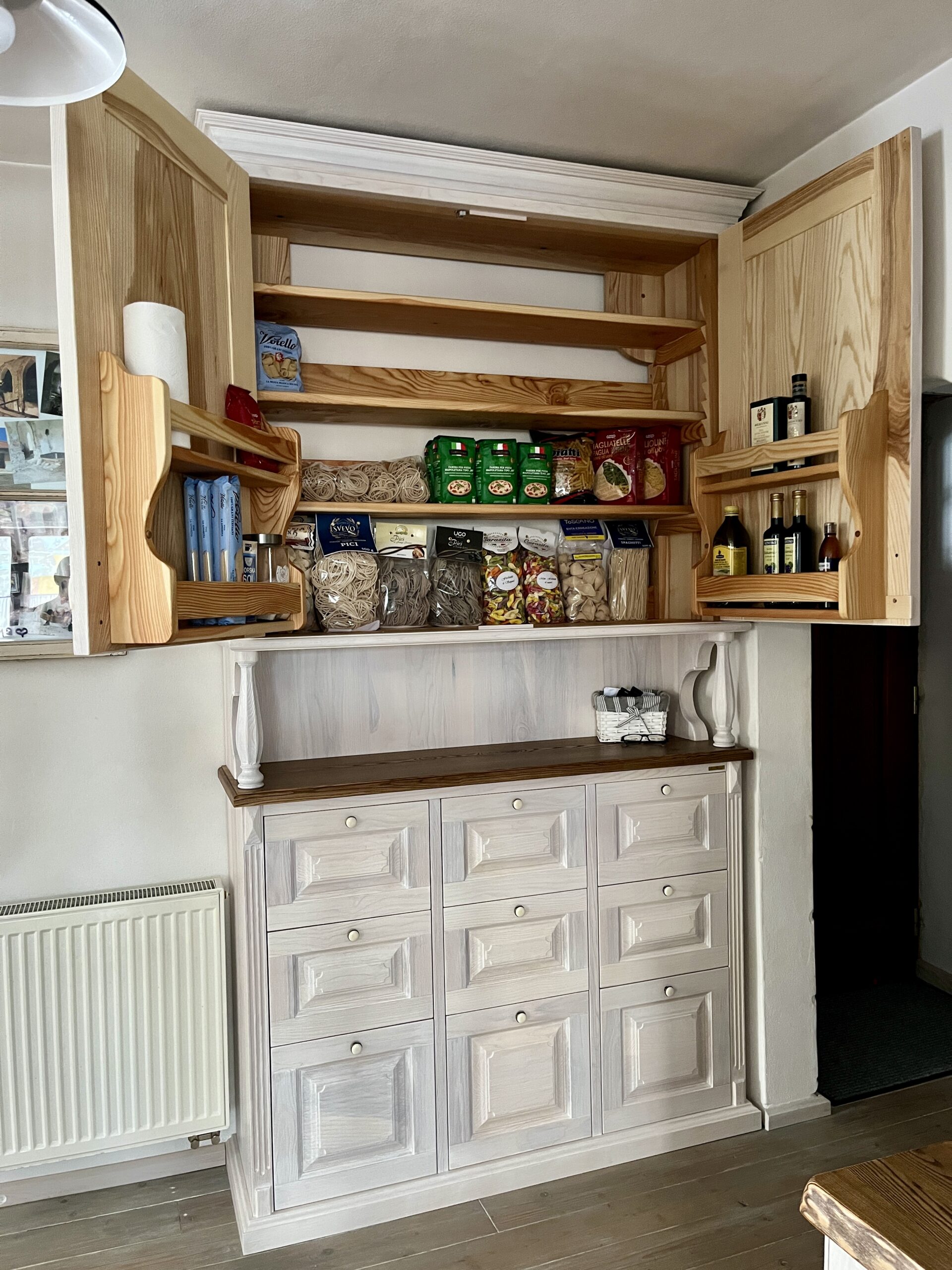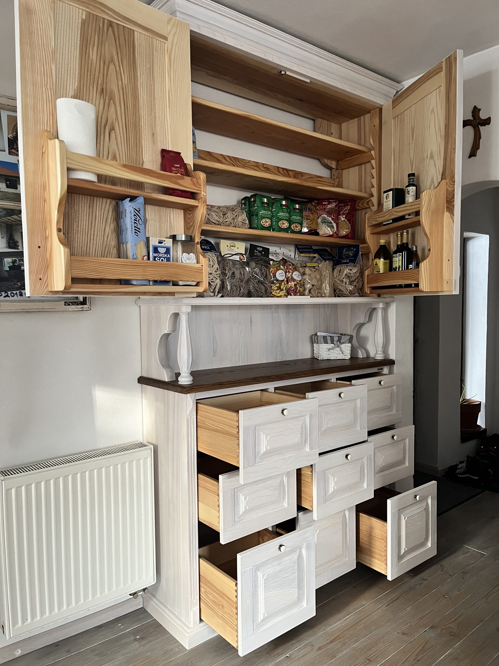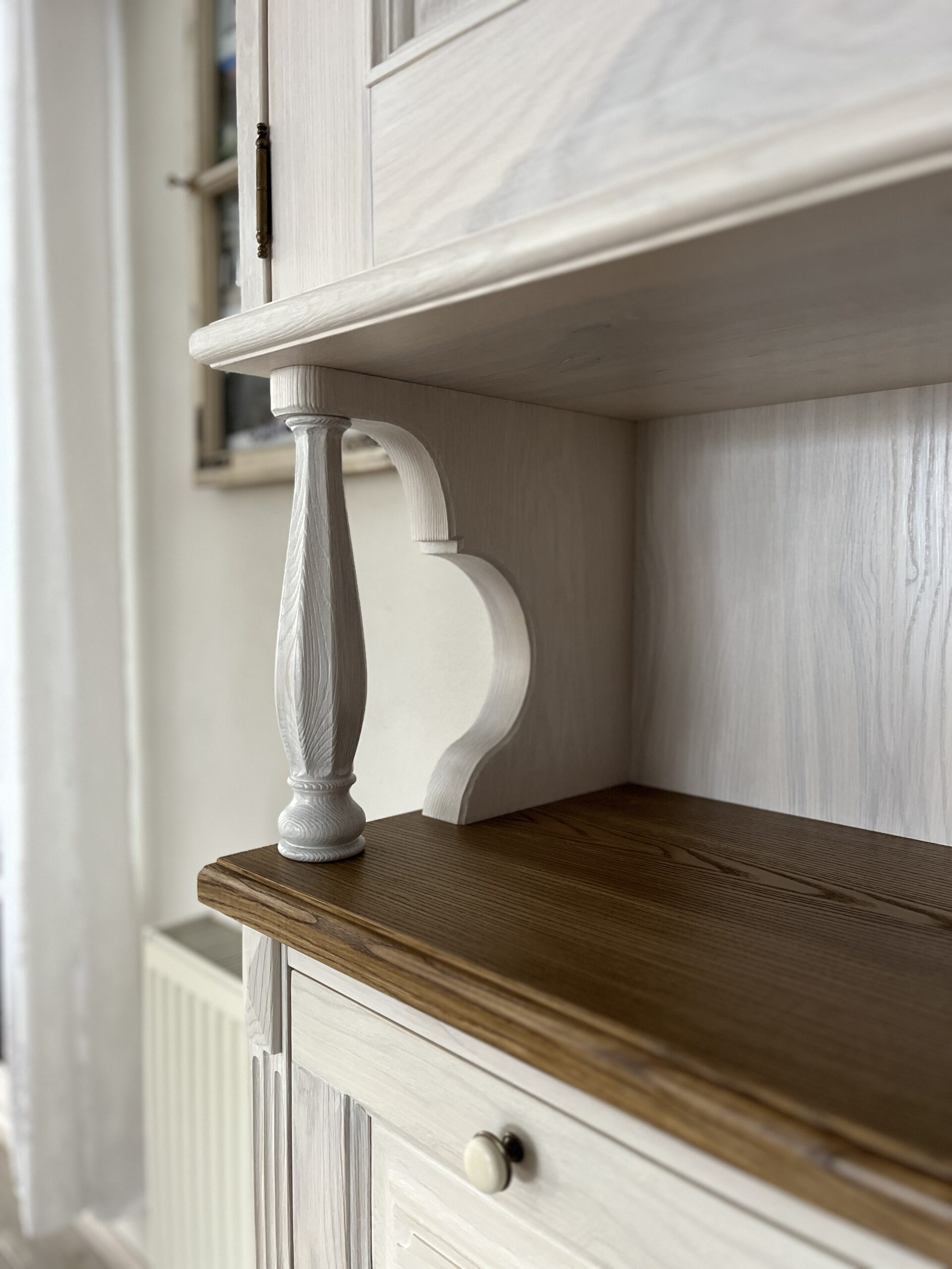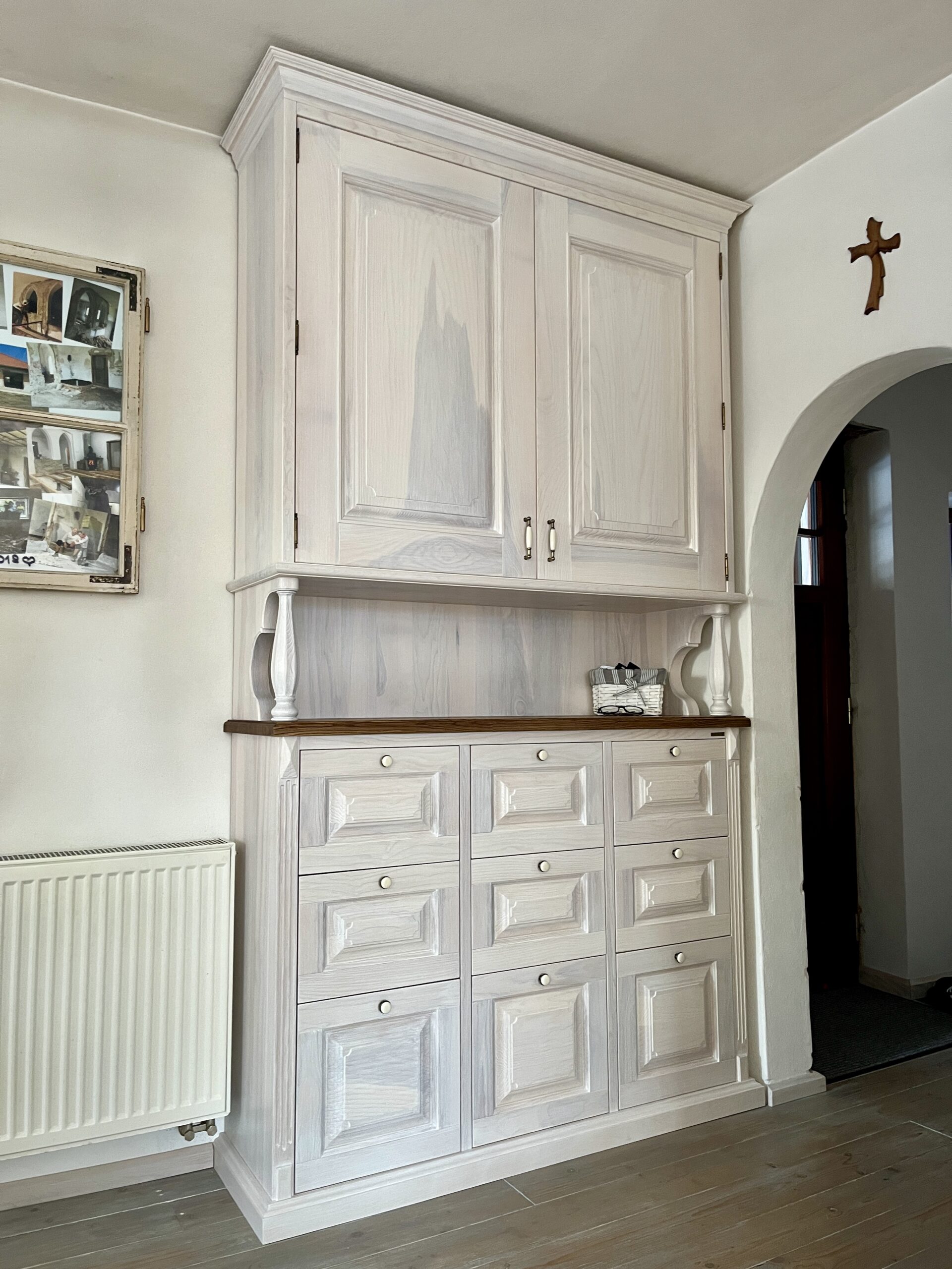 Vyrobili sme kúsok francúzskeho vidieka! Tento nádherný kredenc z jaseňového dreva v provensálskom štýle je výsledkom poctivej ručnej práce a lásky k detailom. Drevo dodáva nábytku stabilitu a trvácnosť, zatiaľ čo jemné farby a vintage prvky vytvárajú atmosféru pokoja a tepla domova.